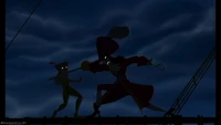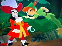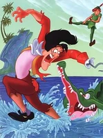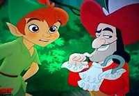 Captain Hook with his old enemige Peter, Smee and Jake and his crew