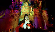 Captain Hook and The Queen in the Magic Kingdom parade, SpectroMagic, in what is not their natural outfits
